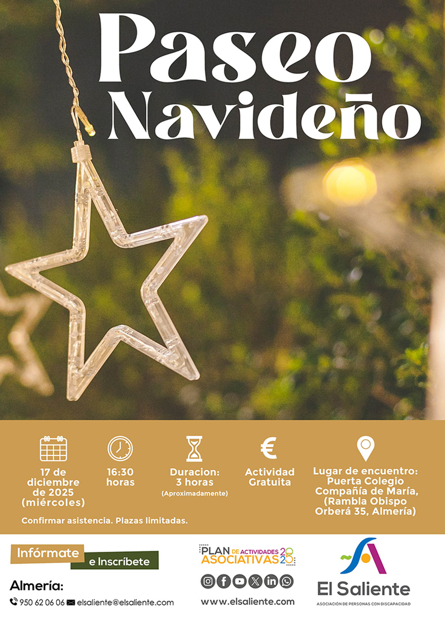 Actividad al aire libre para disfrutar del ambiente navideño en Almería, fomentando la convivencia, la participación activa y el bienestar físico y emocional. A través de un recorrido accesible, las personas participantes visitan belenes, la iluminación navideña y otros espacios emblemáticos de la ciudad, compartiendo una experiencia inclusiva y adaptada.
