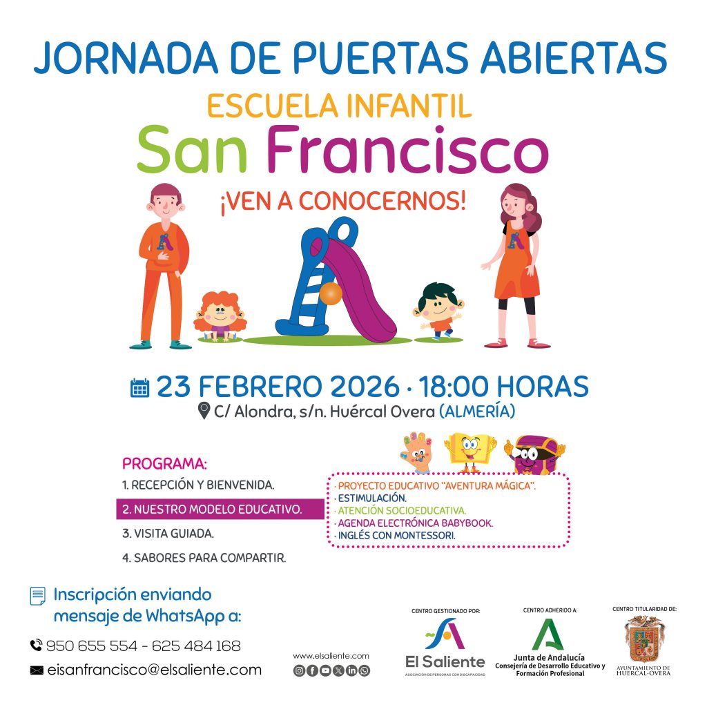 La Escuela Infantil San Francisco abre sus puertas a las familias que quieran descubrir de primera mano nuestro proyecto educativo, nuestras instalaciones y el equipo profesional que acompaña cada etapa del desarrollo infantil.